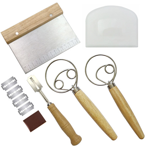 Batidor de masa danés, juego de batidor de pan, herramientas para hacer pan, batidor holandés de masa fermentada, cortador raspador, cuchillas de herramienta de puntuación cojo