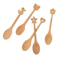 Juego de cucharas pequeñas de bambú de 5,7 ", Mini cuchara de madera con bonitos mangos de dibujos animados, cucharas para miel, té, especias, cucharadita para comer, Revolver
