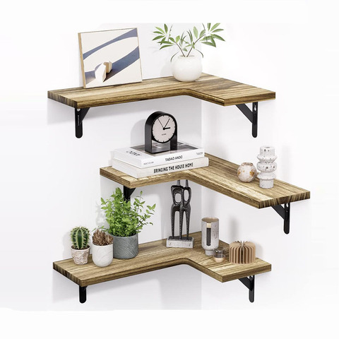 Corner Floating Shelves Wall Mounted Rustic Wood Storage Display Wall Shelves for Home Decor Bathroom Bedroom Living Room Office