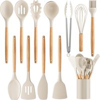 12Pcs Silicone Cooking Utensils Set Kitchen Utensil Turner Tongs, Spatula, Spoon, Wooden Handle Kitchen Gadgets with Holder